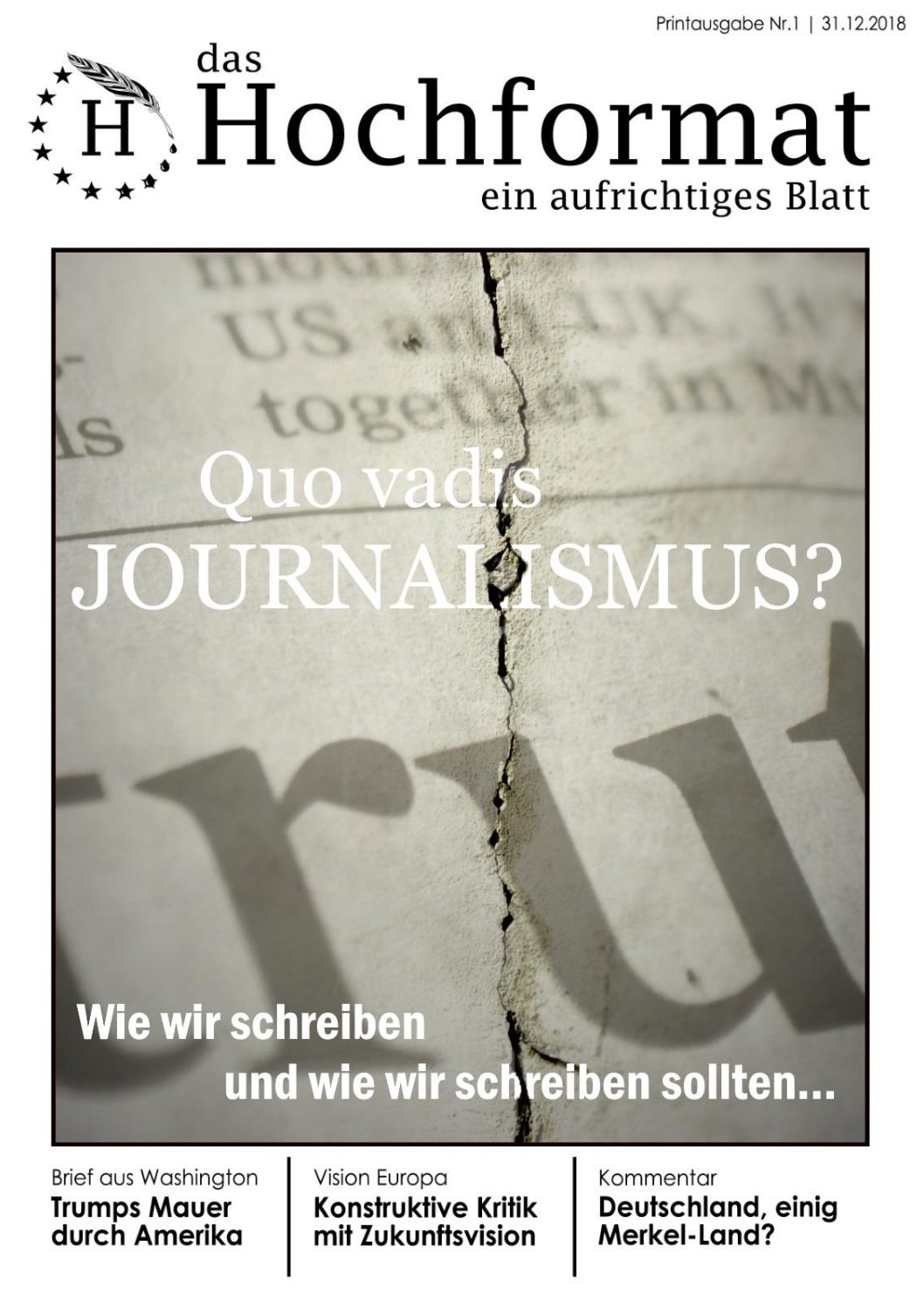 Vor diesem Hintergrund erscheint das vorangegangene Zitat mehr als nur zynisch. Aber nein, es war keineswegs Zynismus, der uns dazu verleitete gerade dieses Zitat an den Anfang unserer ersten Printausgabe zu stellen. Vielmehr stellt dieses Zitat des SPIEGEL-Gründers eine der grundlegendsten Fragen im Journalismus. Was ist des Journalisten höchstes Gut? Die Wirklichkeit, die Moral? Es ist kein Zufall, dass sich unsere erste Printausgabe ausgerechnet mit dem Thema Journalismus beschäftigt. Da unsere Zeitung selbst noch in den Kinderschuhen steckt, ist es gerade auch für unsere Redaktion wichtig, sich mit dem Gebiet des Journalismus grundlegend auseinander zu setzen. Die zentrale Aufgabe des Journalismus mag sicherlich sein, der Gesellschaft den Spiegel vorzuhalten, doch um dieser Aufgabe nachzukommen, ist es für den Journalismus essentiell, sich gelegentlich selbst den Spiegel vorzuhalten. Eben das möchten wir in dieser Printausgabe tun und haben unsere Artikel aus dem Jahr 2018, die sich mit eben jenem Thema beschäftigen, unter besagten Leitthema zusammengefasst.